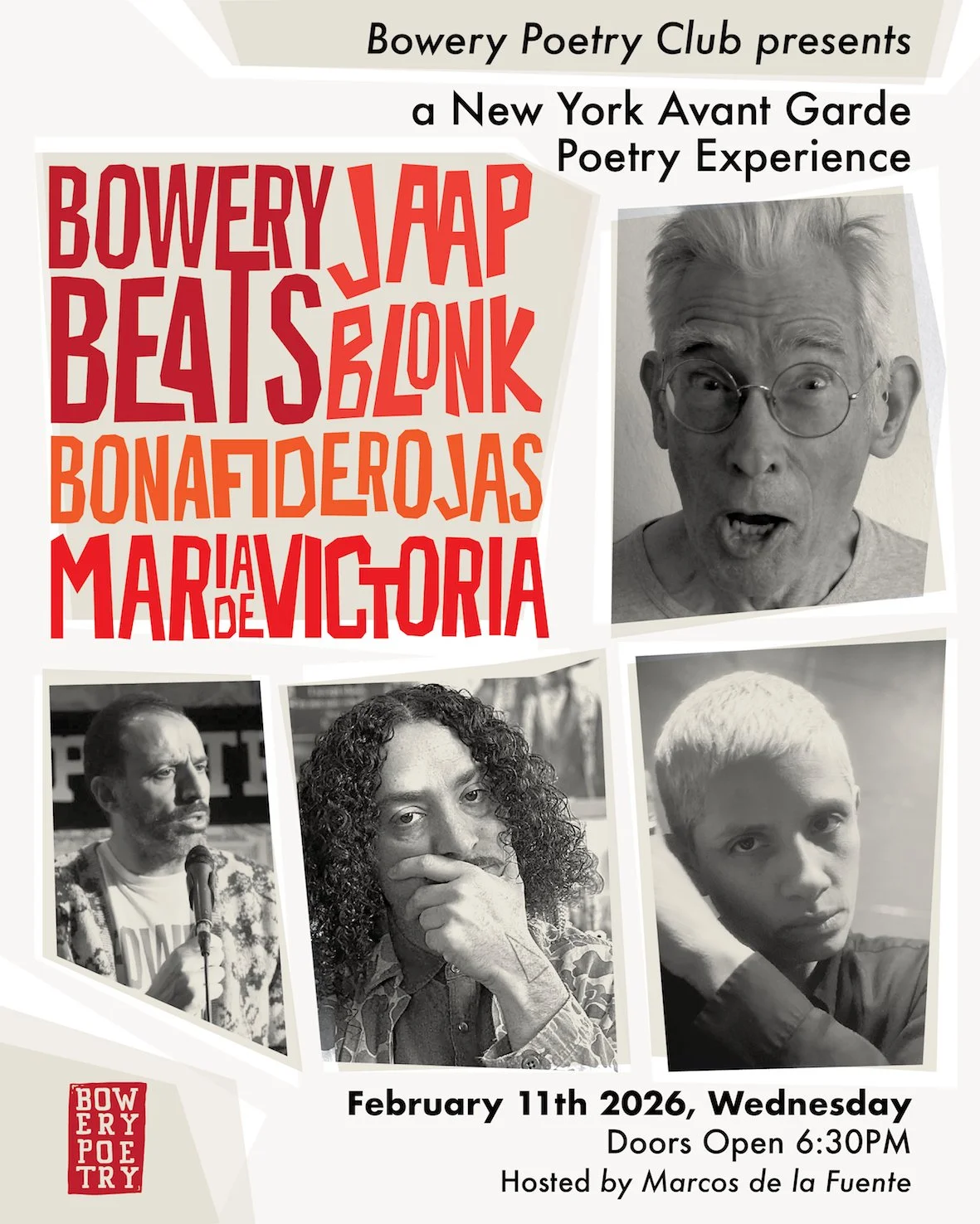 He organizes at the Bowery Poetry Club the Open Mic monthly series Se Buscan Poetas (Wanted Poets) He works on the poetry reading, action poetry, performance and spoken word, with or without music.