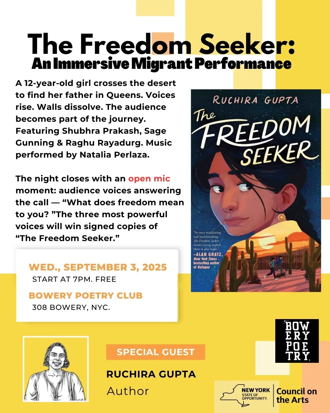 📚 Signed copies of The Freedom Seeker will also be available after the performance. Quote cards with words from the book and a QR link to carry the story home will be shared. Buy the book at https://ruchiragupta.com/the-freedom-seeker/